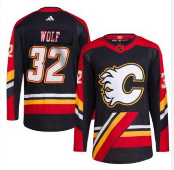 - Men Calgary Flames Dustin Wolf #32 NHL Adidas Stitched Jersey black
