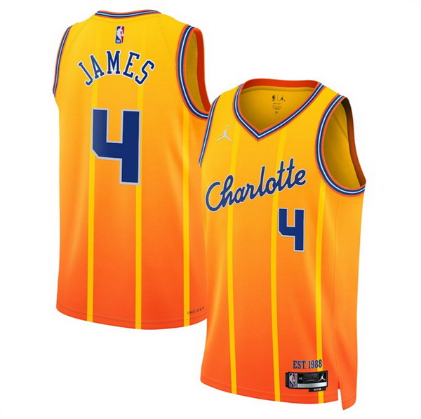 - Men Charlotte Hornets 4 Sion James Orange 2025 26 City Edition Stitched Basketball Jersey